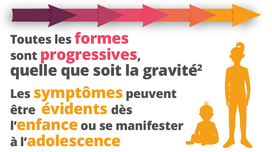 N’oubliez pas que les symptômes de l’Alpha-Mannosidose peuvent être très variés : certaines personnes n’auront que des symptômes légers, d’autres auront des symptômes modérés, voire graves.6